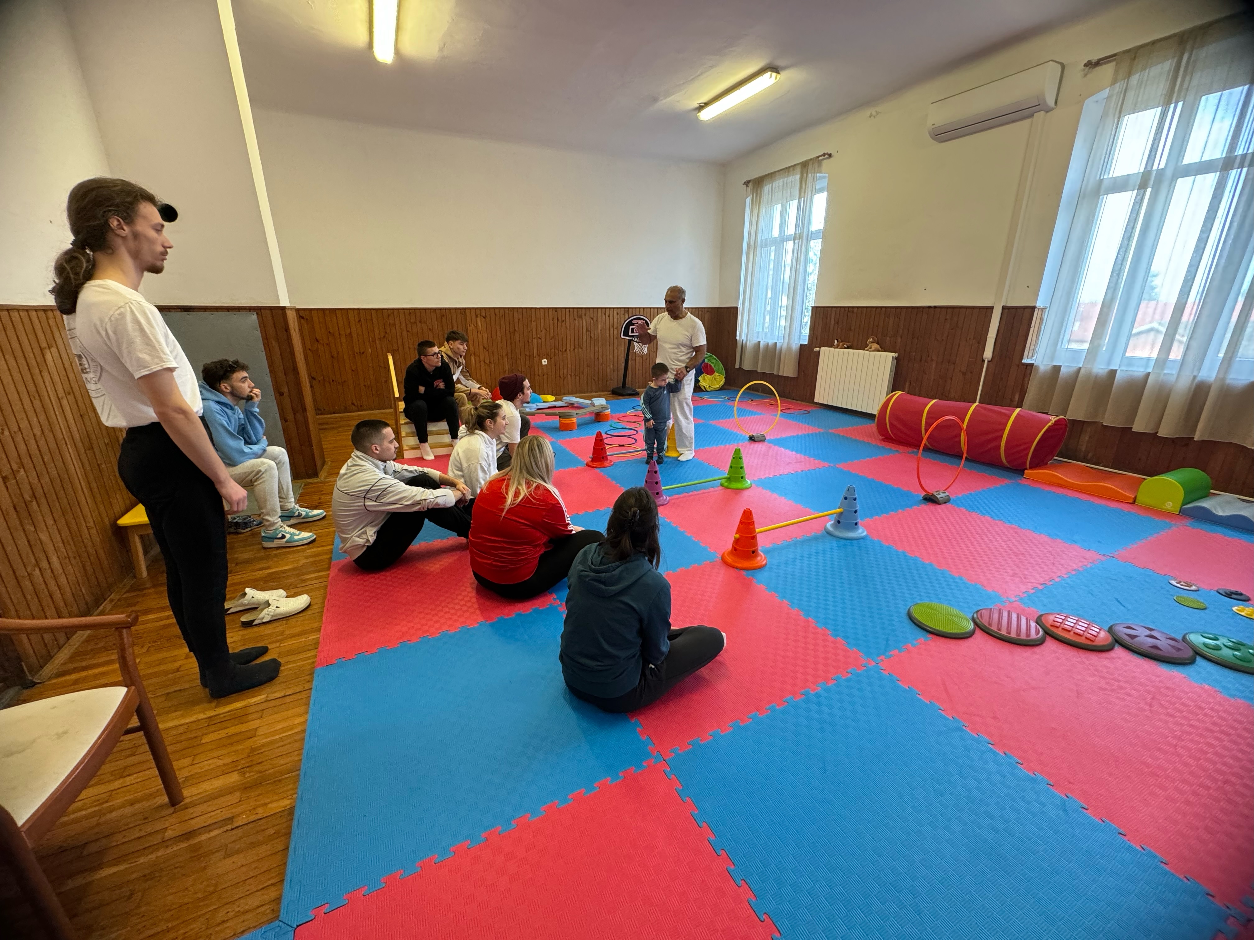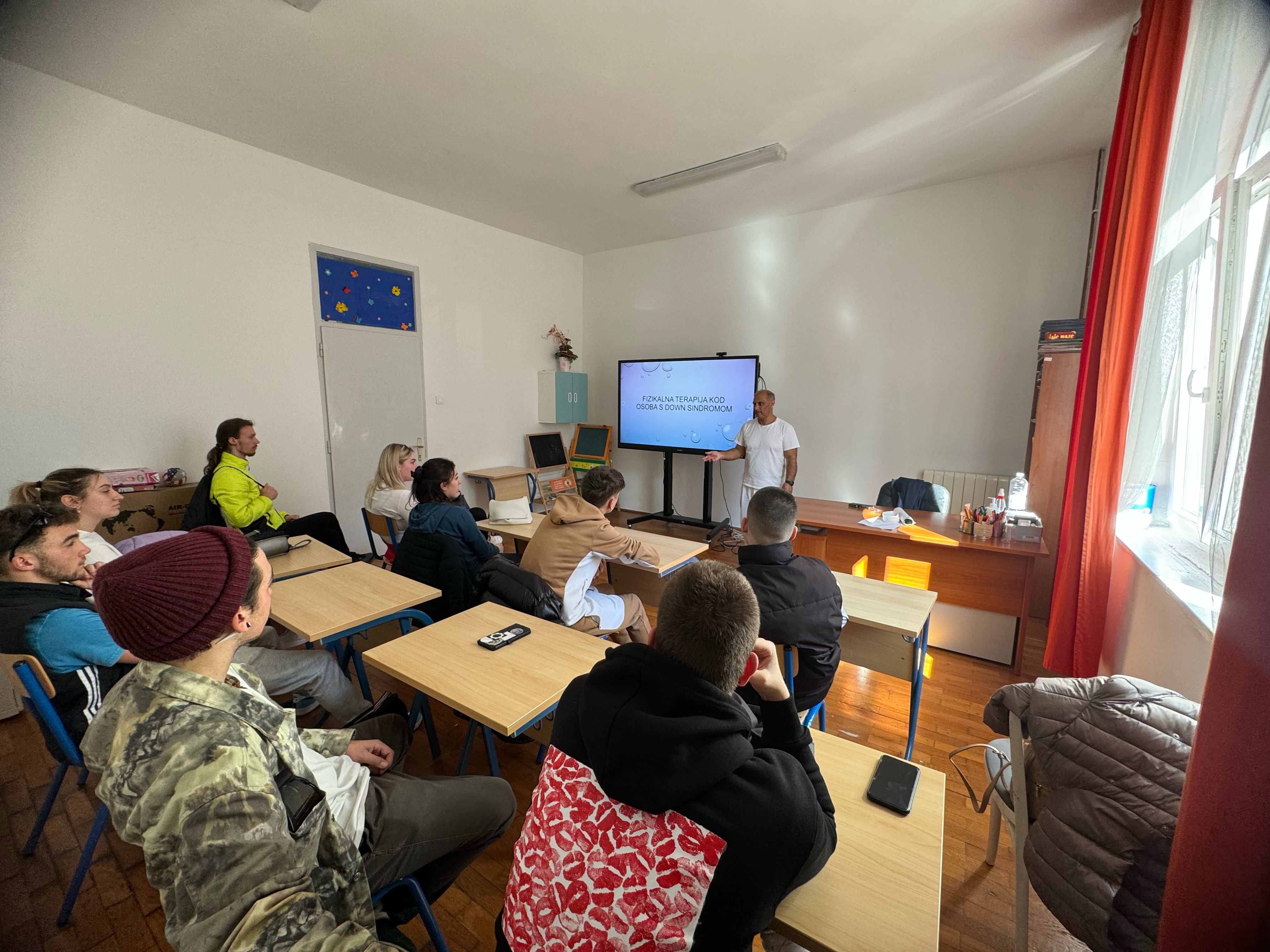Non si sa molto sulla Sindrome di Down in ambito riabilitativo, sono solo 3 i Centri Down in Europa che si occupano di questa sindrome. Gli studenti hanno imparato dal fisioterapista Goran Usainović come comportarsi con questi pazienti, quali sono le loro caratteristiche, il loro quadro clinico, e ha sottolineato l'obiettivo principale della riabilitazione della sindrome di Down, che è quello di raggiungere la loro autonomia nelle attività quotidiane come l'alimentazione, il cambio d'abito, l'igiene personale e la mobilità. Gli alunni hanno avuto anche l'opportunità di lavorare praticamente con gli utenti più piccoli del Centro.