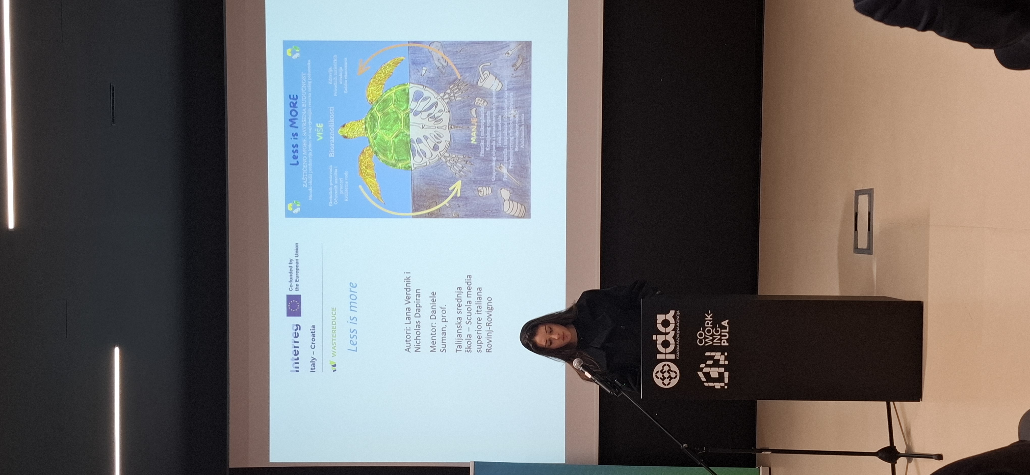 Gli studenti Nicholas Dapiran e Lana Verdnik, allievi della Scuola Media Superiore Italiana di Rovigno, hanno partecipato al concorso creativo “More bez otpada – prošlost i budućnost” (Mare senza rifiuti – passato e futuro), promosso dalla Regione Istriana nell’ambito del progetto europeo WASTEREDUCE.