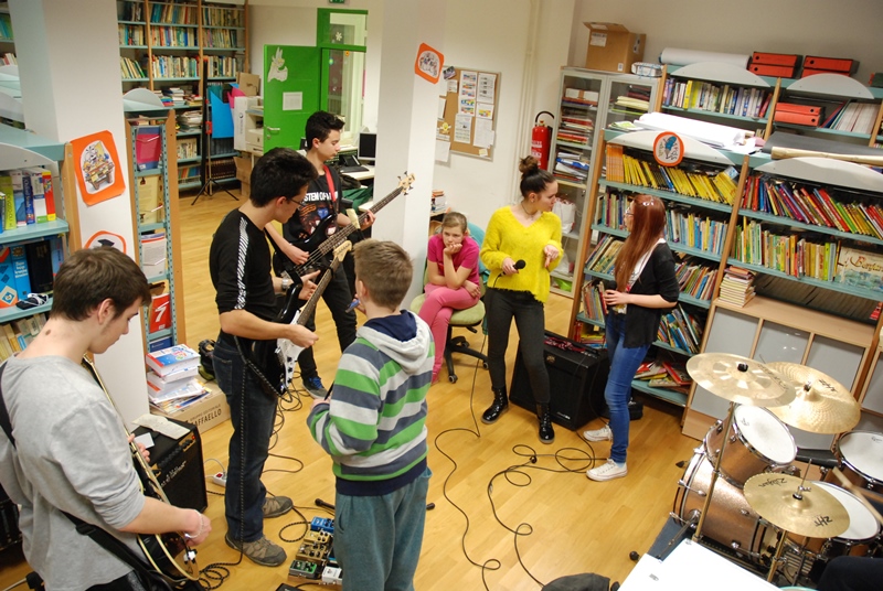 Ci siamo intrufolati nella biblioteca della SEI Bernardo Benussi per assistere alla prove della band.... :)