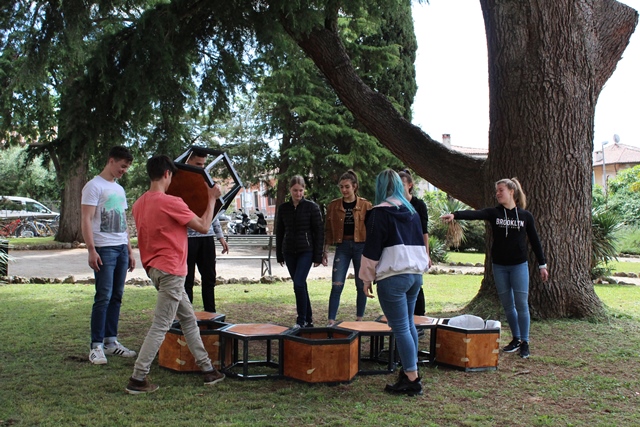 I ragazzi delle due scuole hanno partecipato ad un laboratorio, tenuto dalla responsabile dell'Associazione ed oggi hanno iniziato a formare il giardino.