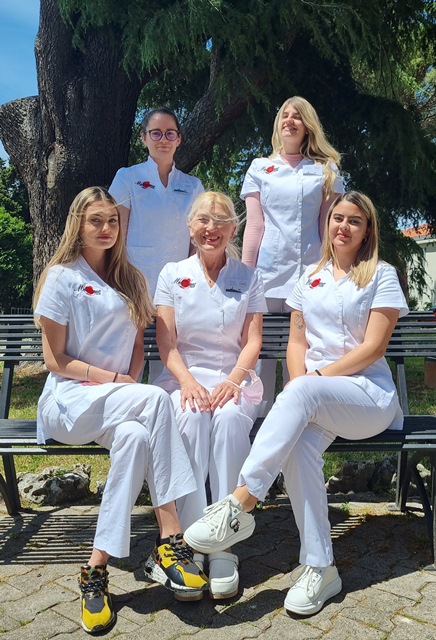 La nostra prima generazione, dimostrando massima professionalità, ha creato, assieme alla loro professoressa di Cosmesi applicata, Ornela Šuvak, il nome e il logo del loro “Centro estetico”. Così, due anni fa è nato il “Melograno” ispirato all’antico stemma di Rovigno fino alla seconda metà del XII secolo, che spiega l’origine del nome latino “Rubinum”. Il frutto del melograno è simbolo di abbondanza, i suoi chicchi rappresentano la ricchezza, la fertilità e la prosperità, costituiscono un elisir di vita perché contengono vitamine, fruttosio, sali minerali e ossidandi. Il suo colore rosso è associato al sangue e indica vitalità, passione ed energia. È un simbolo molto forte e positivo.