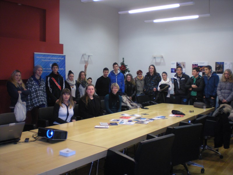 Durante la permanenza presso la sede della Camera dell'economia (Hrvatska Gospodarska Komora), gli alunni hanno avuto la possibilità di conoscere la sig. ra Koraljka Vitasović, che gli ha spiegato l'organizzazione lavorativa e le attività che svolge la Camera e i settori in cui opera. Si è poi soffermata sulle attività che vengono svolte a Pola e sulle imprese istriane.