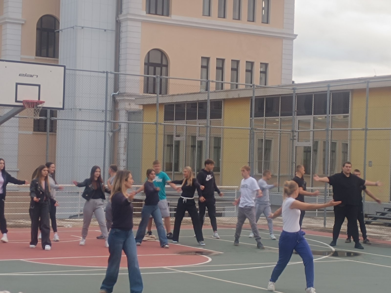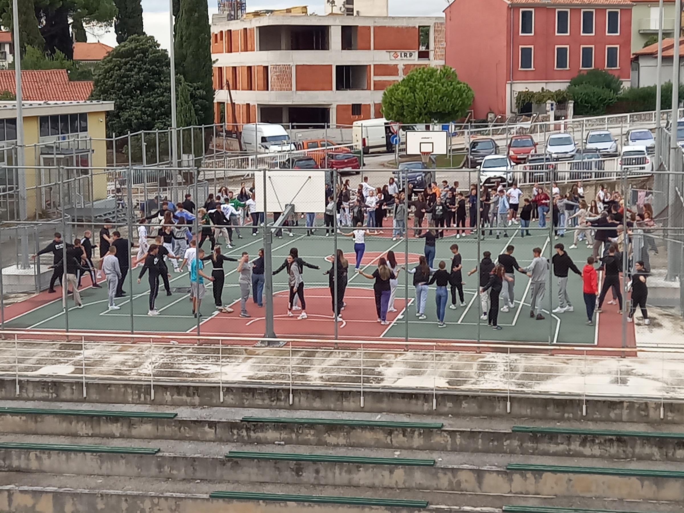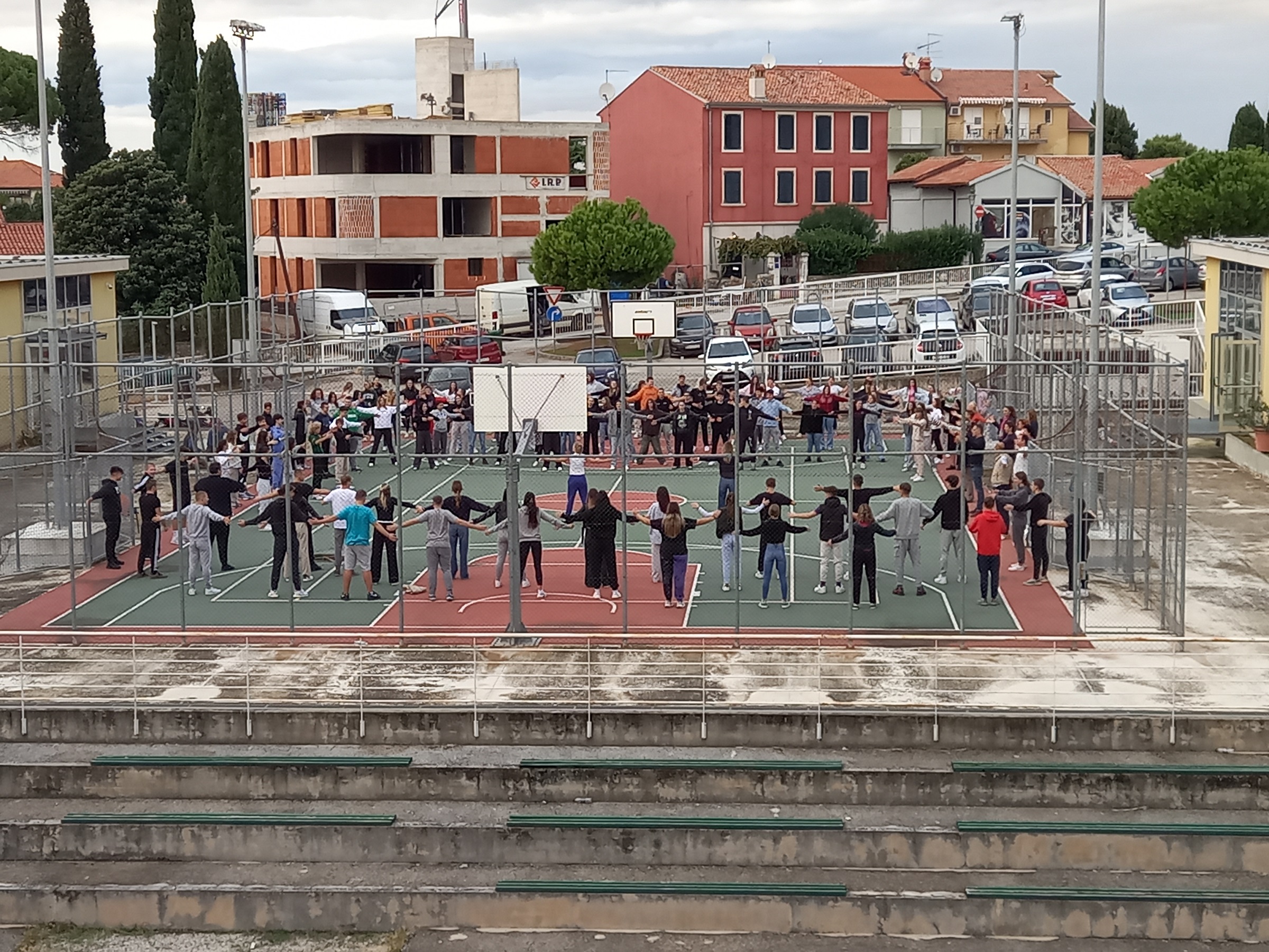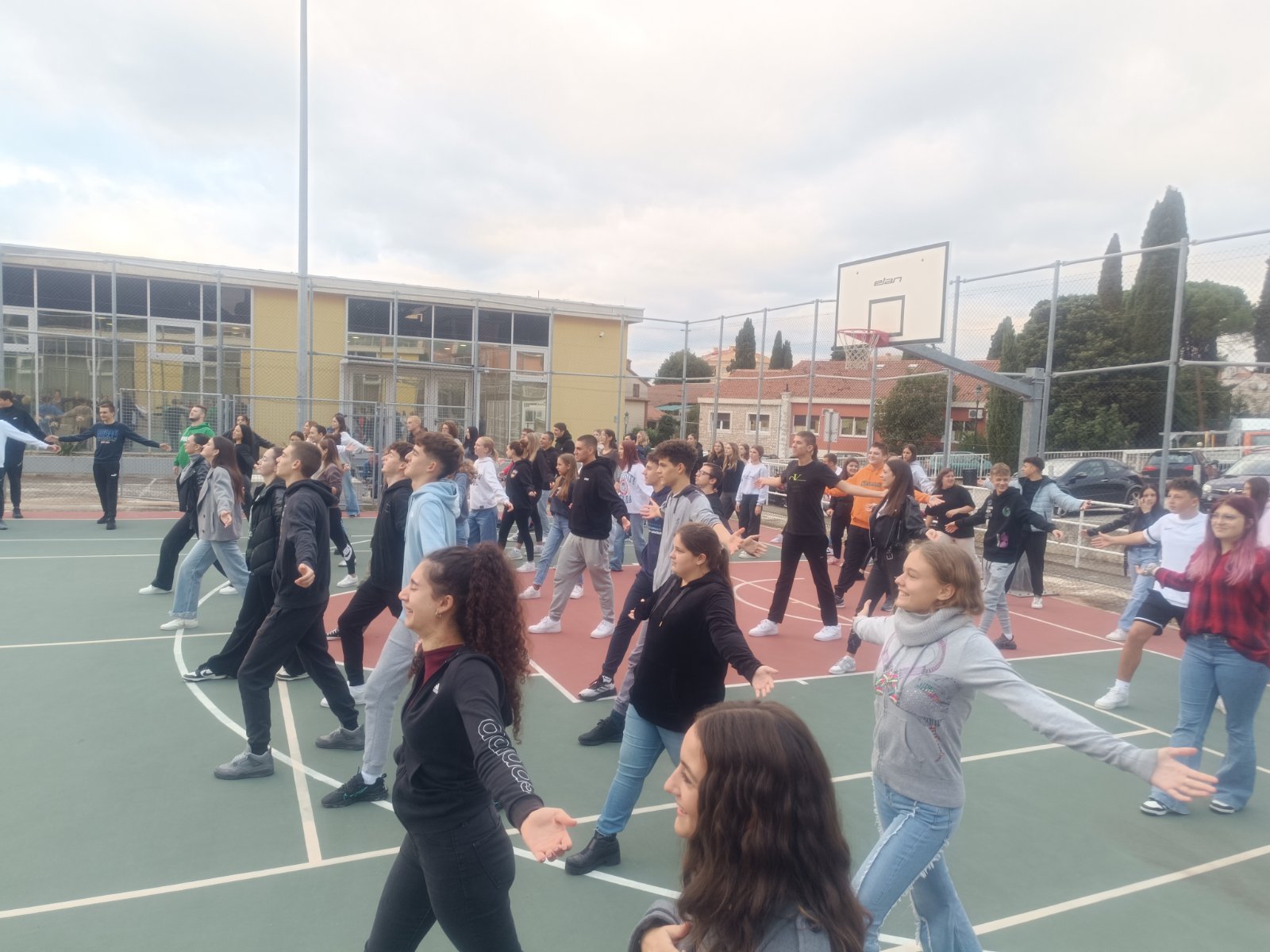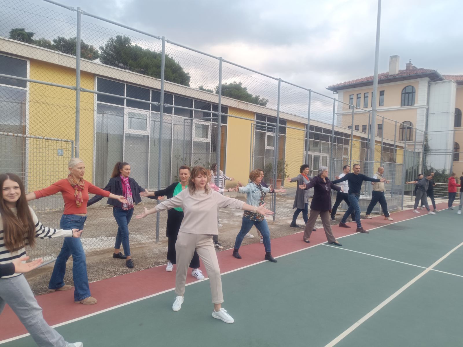 Stamattina, tutte le classi assieme ai docenti sono uscite all’aperto, nel campetto dietro alla scuola e sotto la guida delle prof.sse fisioterapiste Barbara Kercan ed Anelia Pulin, hanno eseguito degli esercizi di rilassamento per affrontare al meglio la giornata.