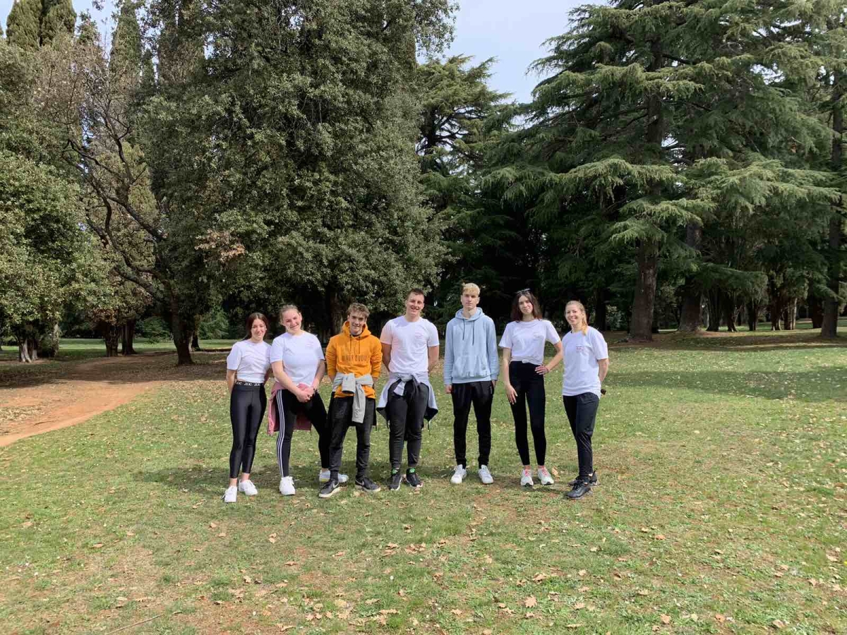 I pedoni sono stati preparati per la tappa menzionata dagli alunni dell'indirizzo del tecnico fisioterapista della nostra scuola alla partenza, coordinati dalla prof.ssa Barbara Kercan, i quali hanno eseguito pure gli esercizi sul prato a Punta corrente.