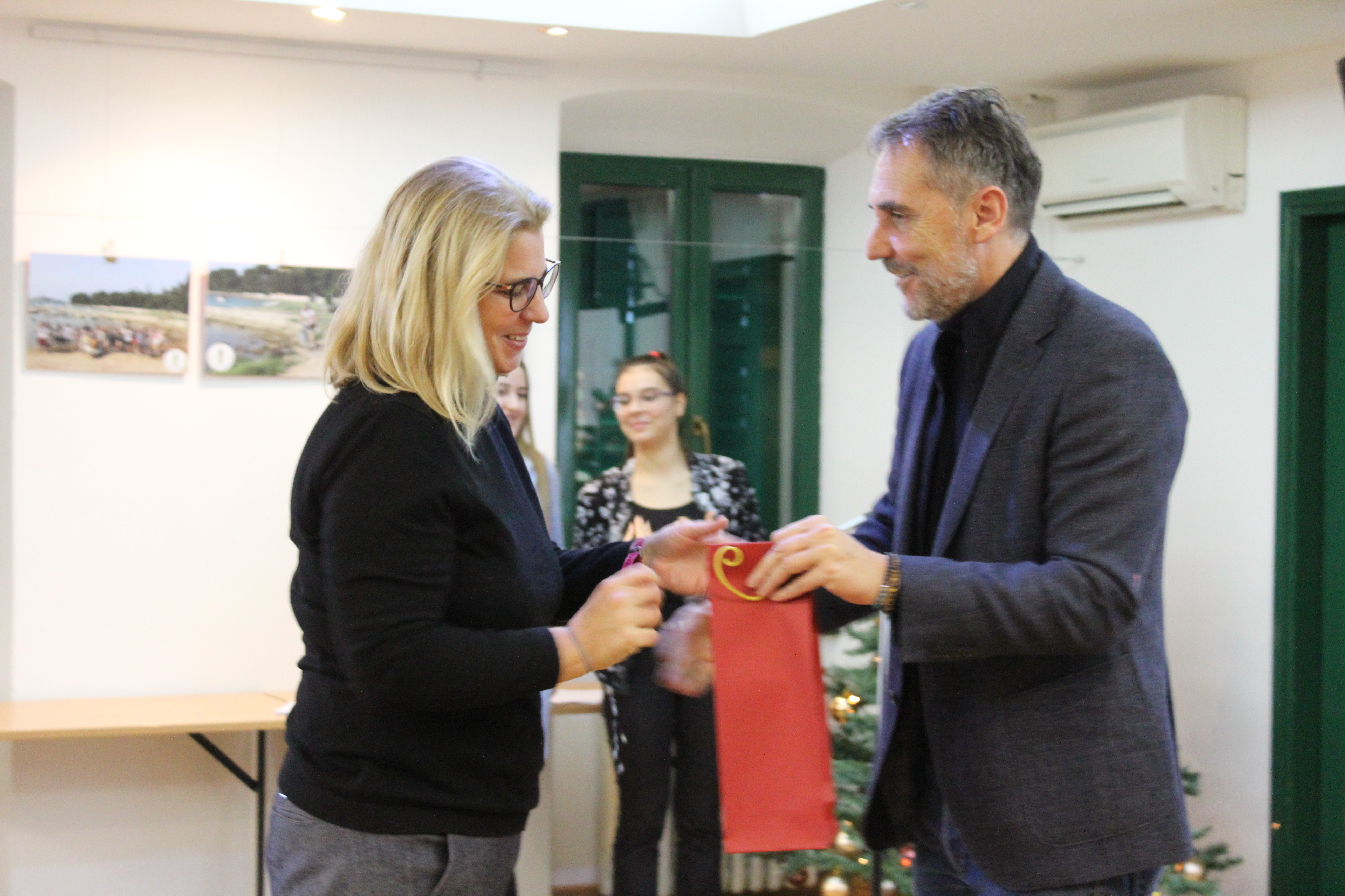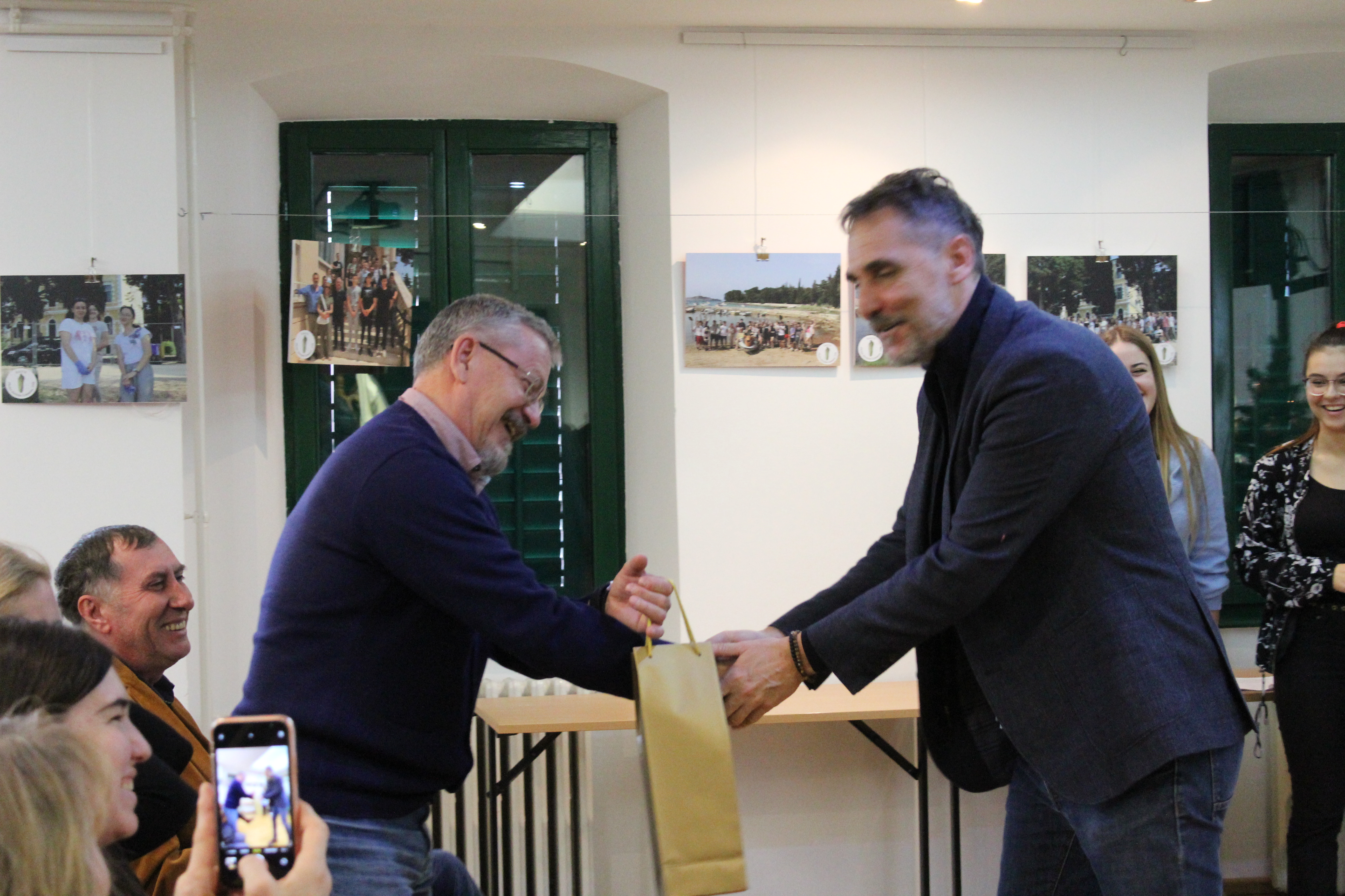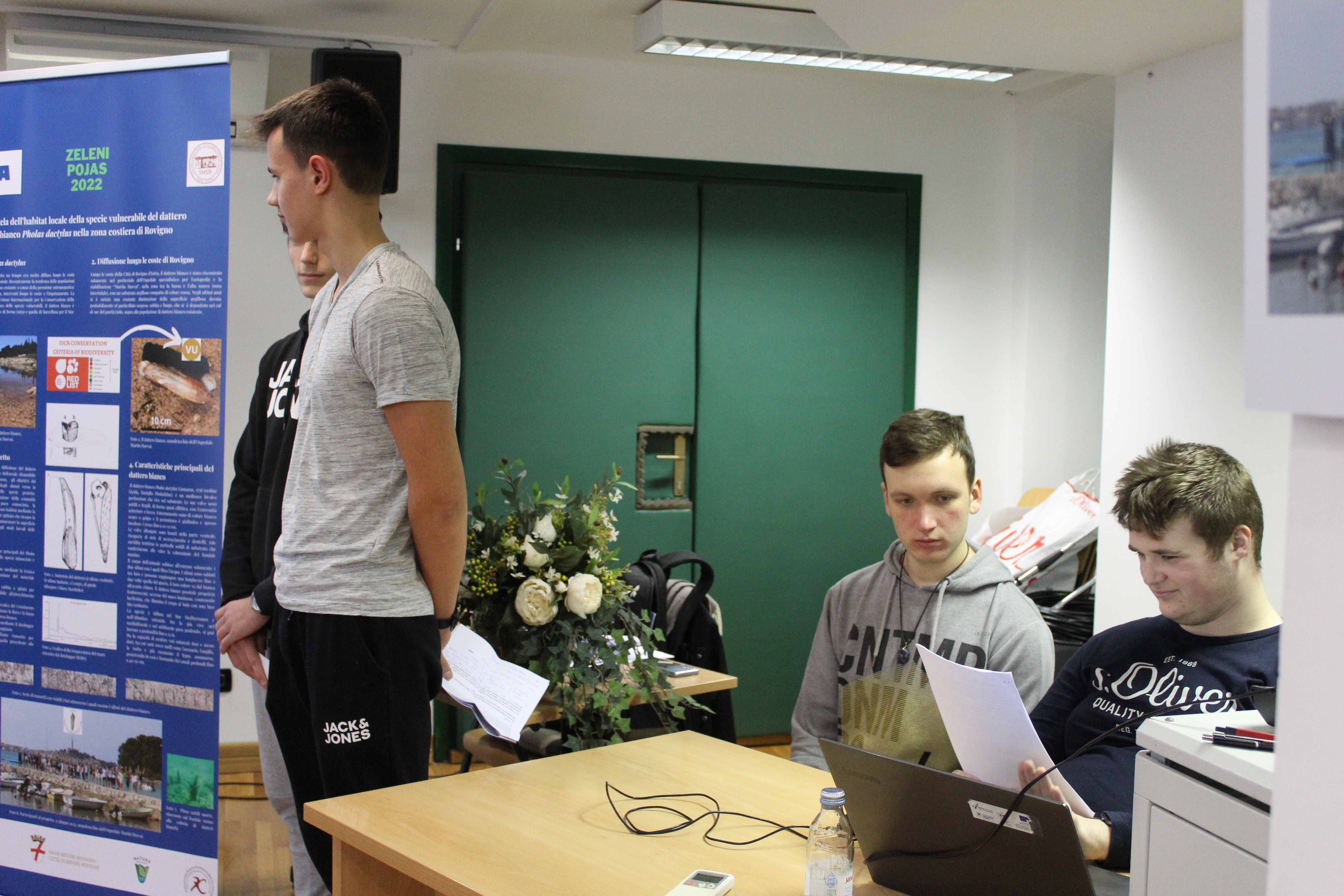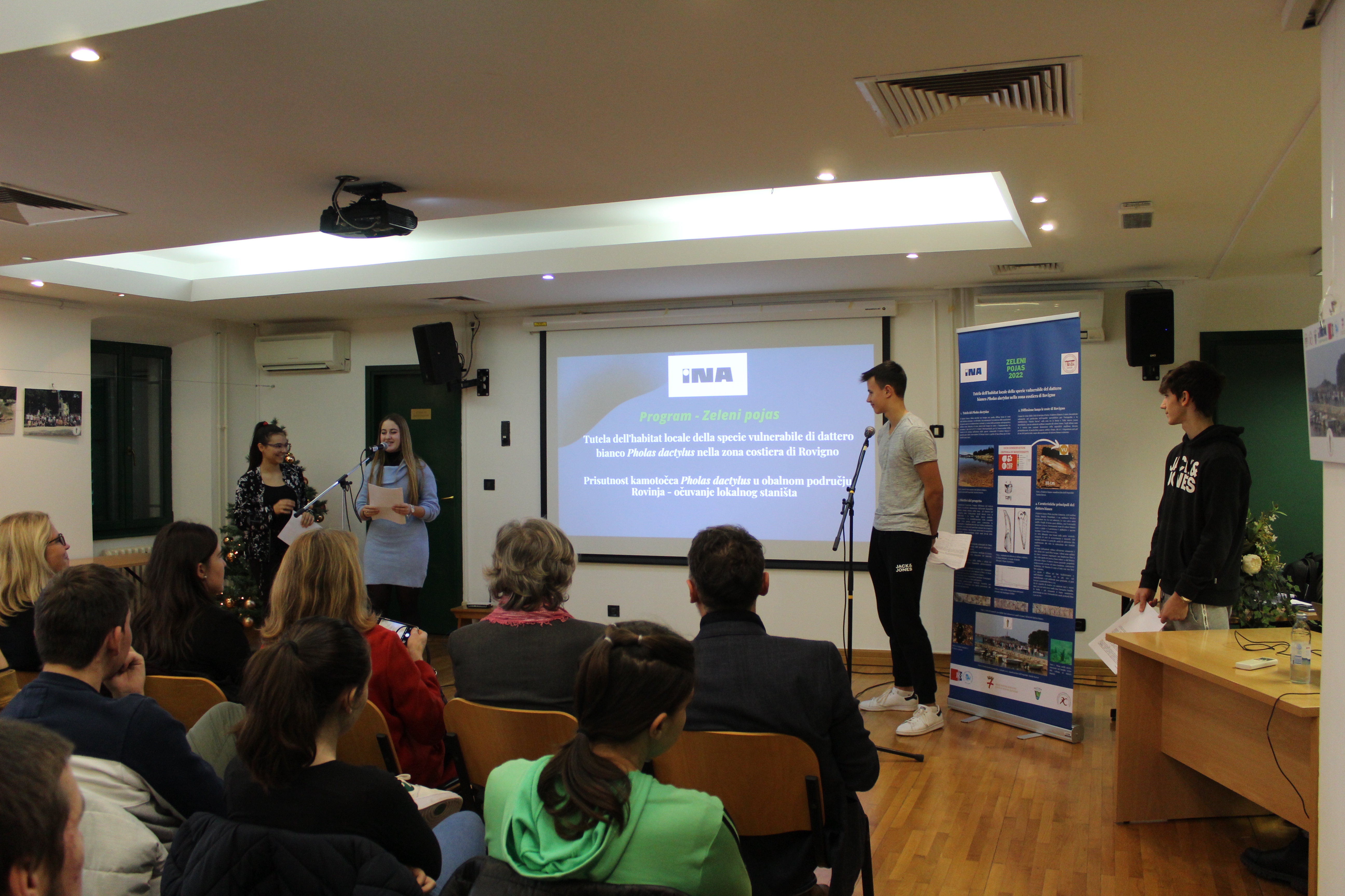 All'evento erano presenti anche la Direttrice dell'Ente regionale per la tutela delle aree protette, dott.ssa Silvia Buttignoni, i dottori in scienze del Centro per le ricerche marine di Rovigno, Andrej Jaklin e Bojan Hamer, la Preside della nostra scuola, prof.ssa Ines Venier, la professoressa Maria Orbanić accompagnatrice degli alunni della Scuola di Formazione professionale Eugen Kumičić, partner al progetto, e il coordinatore del progetto, il prof. mentore Daniele Suman.