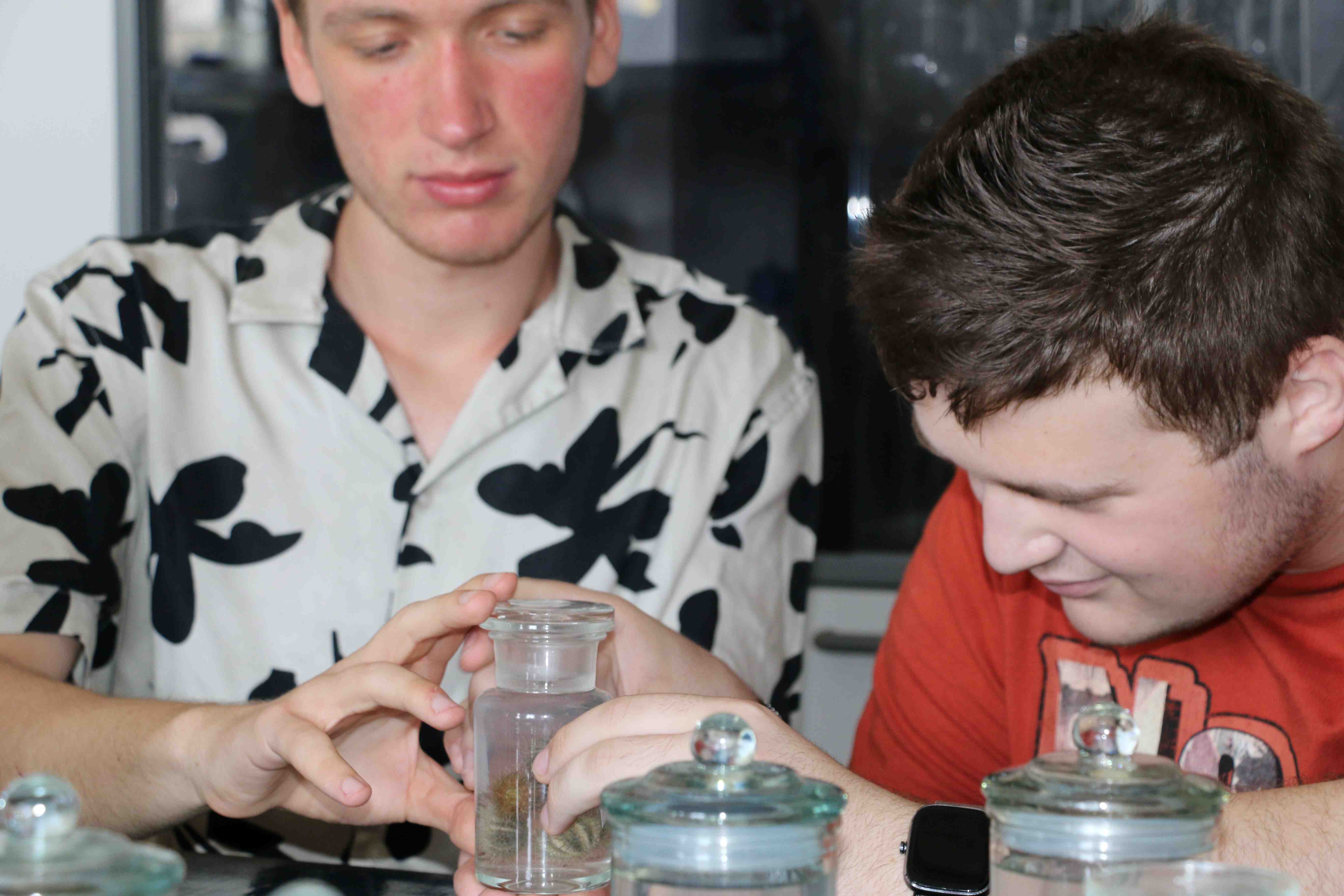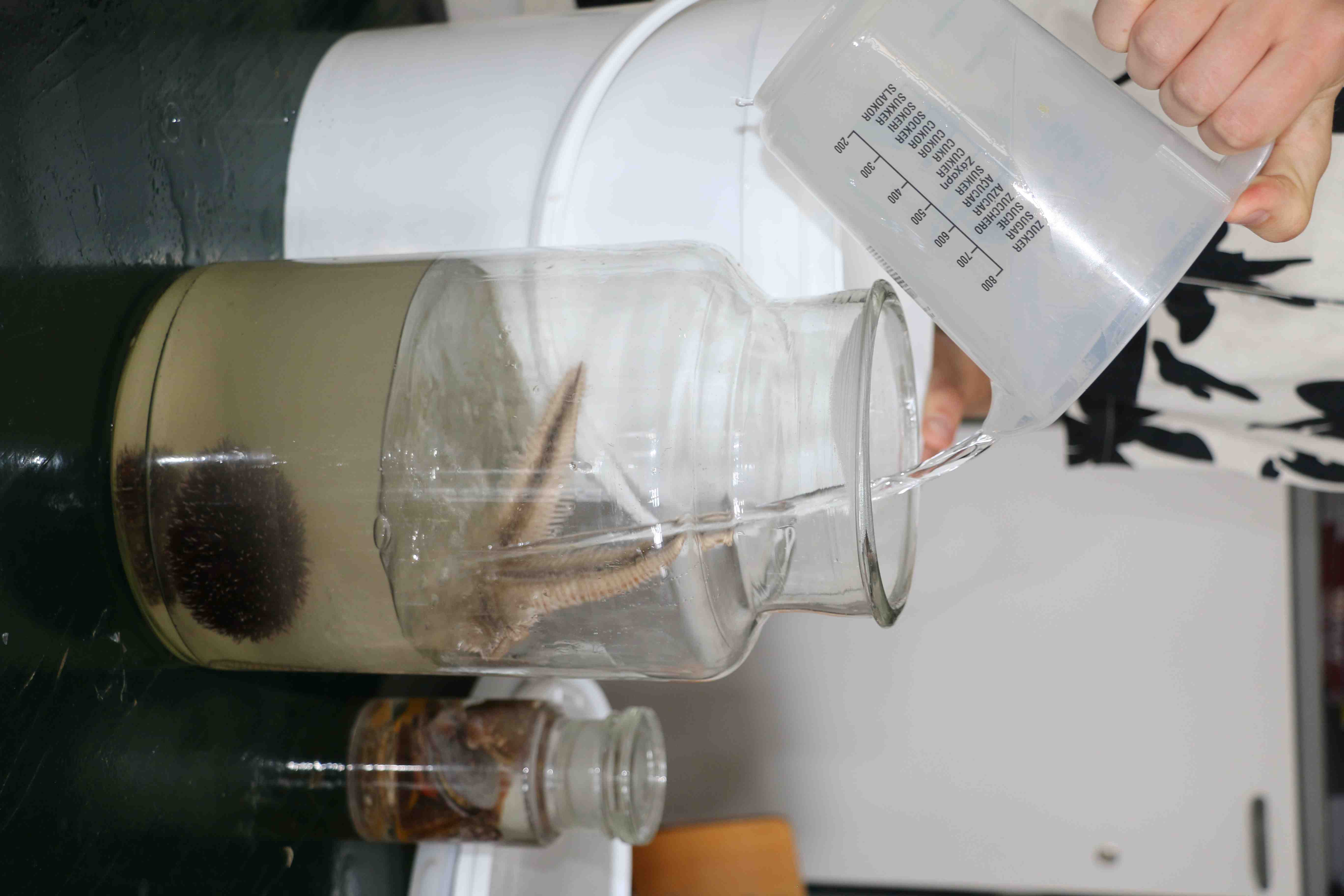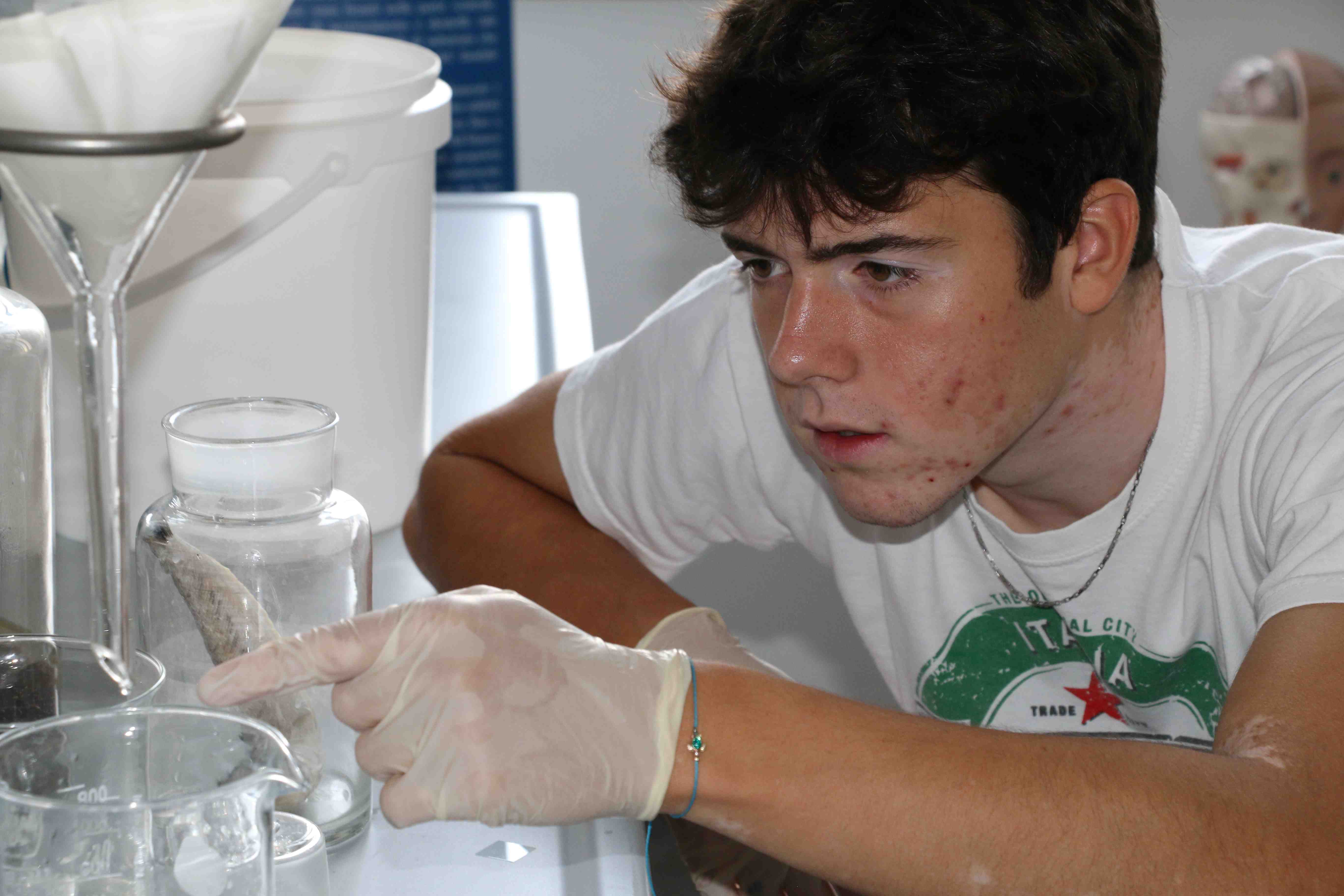 Il 21 giugno u.s., le classi liceali hanno dapprima determinato le specie marine derivanti dallo scarto della pesca a strascico e, successivamente, hanno allestito i preparati zoologici mediante l’immersione degli organismi in una soluzione alcolica al 70% (etanolo), in appositi recipienti di vetro. Complessivamente, hanno allestito una cinquantina di preparati comprendenti spugne, cnidari, molluschi, echinodermi, tunicati, e pesci.