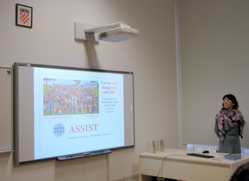 L'alunna Ilaria Suman dela II liceo generale ci racconta la sua esperienza: " La professoressa Karla Golja Milevoj, docente di lingua inglese presso la scuola media superiore “Mate Blažina” di Albona e rappresentate ufficiale in Croazia dell’organizzazione americana ASSIST è venuta nella nostra scuola per presentarci i programmi dell'organizzazione.