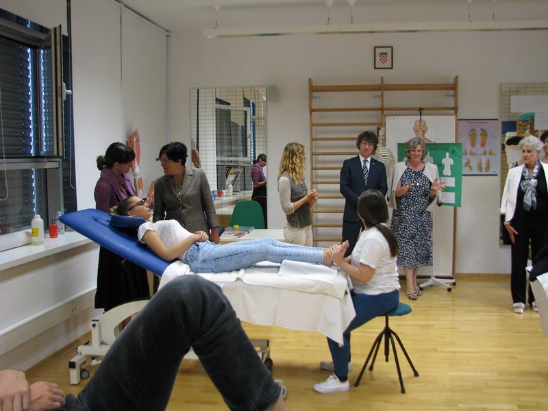 Al termine dell'incontro il Ministro ha visitato l'edificio scolastico e ha assistito ad una dimostrazione pratica di massaggi tenute dalla III e IV tec. fisiot., inoltre, ha salutato i partecipanti del progetto europeo Erasmus+ che stavano assistendo alla conferenza tenuta dal prof. Korado Korlević, nell'ambito del progetto.